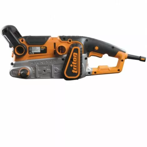 Ponceuse à bande TRITON 76 mm 1200 W Caractéristiques de la ponceuse à bande triton : Le puissant moteur de 1200 W permet un enlèvement rapide du matériau avec la ponceuse à bande triton. La vitesse variable permet d’adapter le ponçage en fonction de la nature variée des matériaux avec la ponceuse à bande triton. La tubulure latérale d’évacuation de la poussière est adaptée aux sacs à poussière ou au système d’extraction de poussière avec la ponceuse à bande triton. Le bouton de centrage de la bande assure une mise en place parfaite avec la ponceuse à bande triton. La poignée principale surmoulée procure un appui accru ainsi qu’un contrôle de l’outil en toute sécurité grâce à la ponceuse à bande triton. Le bouton de marche continue offre plus de praticité pour les utilisations prolongées de la ponceuse à bande triton. Le rouleau avant de petit diamètre permet d’atteindre les espaces restreints Le voyant de mise sous tension améliore la sécurité sur la ponceuse à bande triton. La poignée avant amovible offre un appui accru plus de sécurité avec la ponceuse à bande triton. L’accès rapide aux balais de charbon permet de changer les charbons usés avec la ponceuse à bande triton. BRANCHEMENT DU SYSTÈME D’EXTRACTION DE LA POUSSIÈREBrancher l’appareil sur un aspirateur ou sur un système d’extraction dela poussière d’atelier est le moyen recommandé pour l’extraction de la poussière.Si un système d’extraction de la poussière n’est pas disponible, vous devez installer le sac à poussière fourni sur la tubulure d’extraction de la poussière (2) Utilisez le système baïonnette, en poussant et tournant jusqu’à ce que la baïonnette soit verrouillée. Assurez-vous que la fermeture-éclair du sac soit bien fermée. Pour retirer le sac à poussière, désengagez la baïonnette en la tournant vers l’extérieur puis en tirant dessus. ATTENTION: Retirez et n’utilisez PAS le sac à poussière lors du ponçage du métal. Les particules chaudes de métal et les étincelles peuvent enflammer les résidus de poussière de bois ou mettre le feu au sac. Branchez toujours la ponceuse sur un système d’extraction de la poussière d’atelier ou un aspirateur lorsque vous poncez du métal. Nettoyez toujours complètement l’appareil lorsque vous passez d’un ponçage du bois au ponçage du métal et vice versa Accessoires de la ponceuse à bande triton: Presses d’inversionBande abrasiveSac à poussièreAvant toute utilisation: Assurez-vous que la ponceuse soit débranchée de sa sourced’alimentation avant d’installer ou de changer tout accessoire.• Cette ponceuse est livrée entièrement assemblée. Elle peut être utilisée immédiatement en sortant de la boîte Protégez votre investissement dans cet outil Triton aujourd’hui pour un gain de temps et d’argent dont vous bénéficierez à l’avenir si un défaut devait se manifester sur votre produit. Enregistrer votre produit dans les 30 jours suivant la date d’achat prolongera automatiquement la garantie du produit. Afin de pouvoir valider votre extension de garantie de 3 ans, vous devez enregistrer votre produit sur https://www.tritontools.com/fr-FR/Support?section=register dans un délai de 30 jours suivant votre achat. Si vous ne souhaitez pas enregistrer votre produit, vous bénéficierez néanmoins d’une garantie de base de 30 jours. Pour obtenir la prise française, il suffit de dévisser la vis se trouvant sur la prise américaine