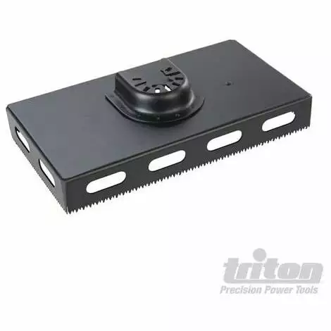 Accessoire pour outils multifonctions de conception universelle ouverte, pour utilisation sur Placoplâtre, bois et plastique. Idéale pour l’installation de divers types de boîtiers doubles tels que boîtiers de prises électriques ou boîtes métalliques. Compatible avec outils multifonctions oscillants Silverline, GMC et Triton ainsi qu’avec appareils multifonctions standard à changement d’accessoires rapide sans outils.